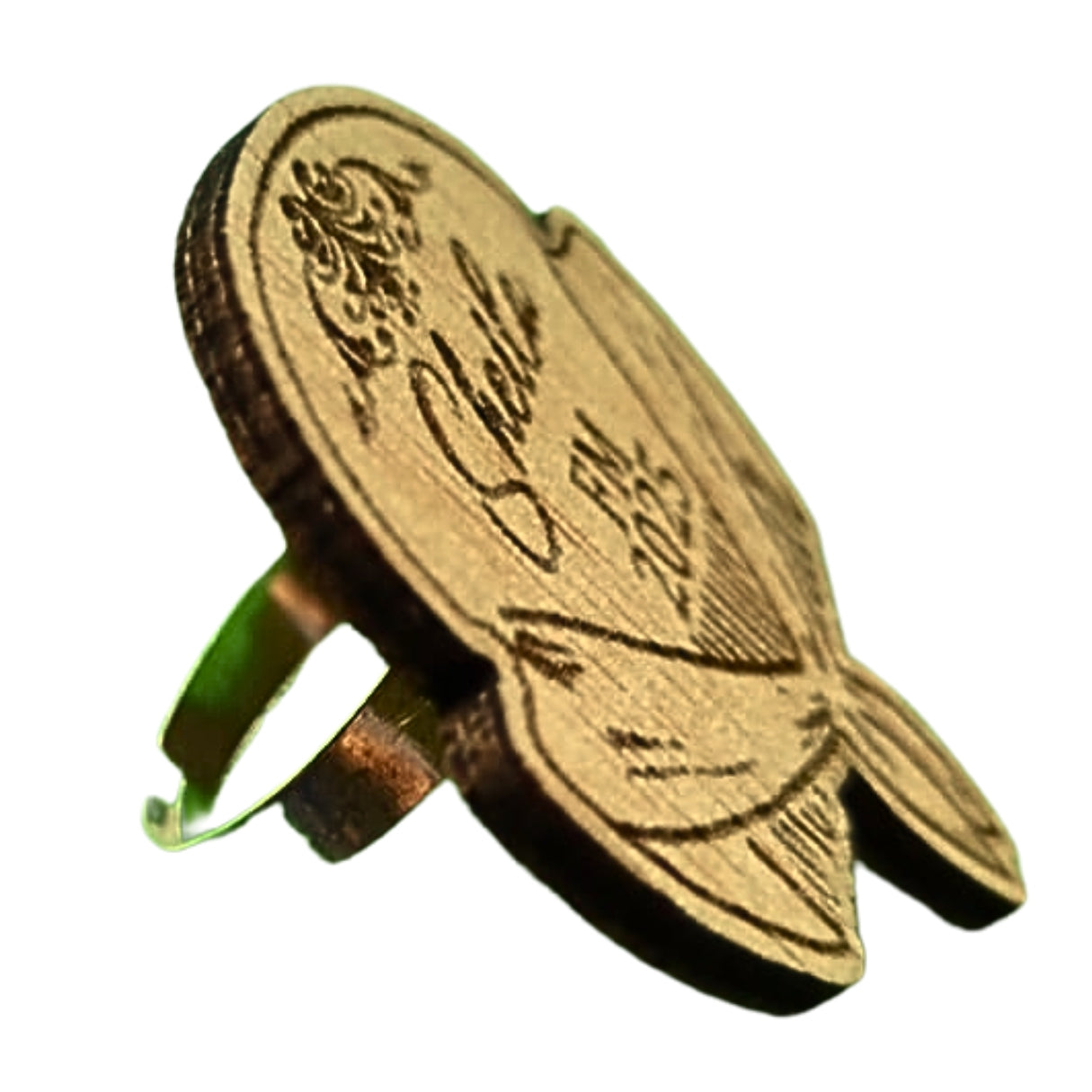 Dale un toque especial a tu indumentaria con este sujeta pañuelos en forma de peineta fallera, diseñado para sujetar el pañuelo sin necesidad de hacer un nudo. Fabricado en madera natural de 3 mm y grabado a láser con un elegante dibujo de un pañuelo recogido, es el complemento perfecto para cualquier fallero o fallera.